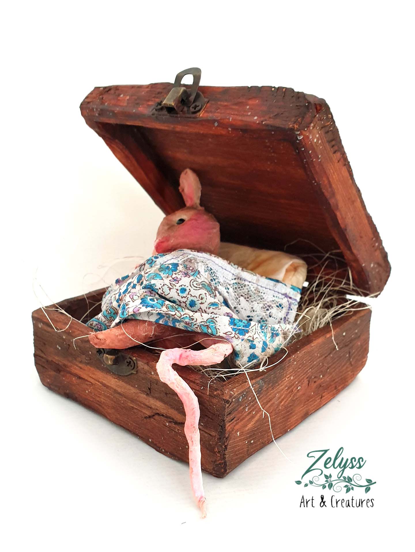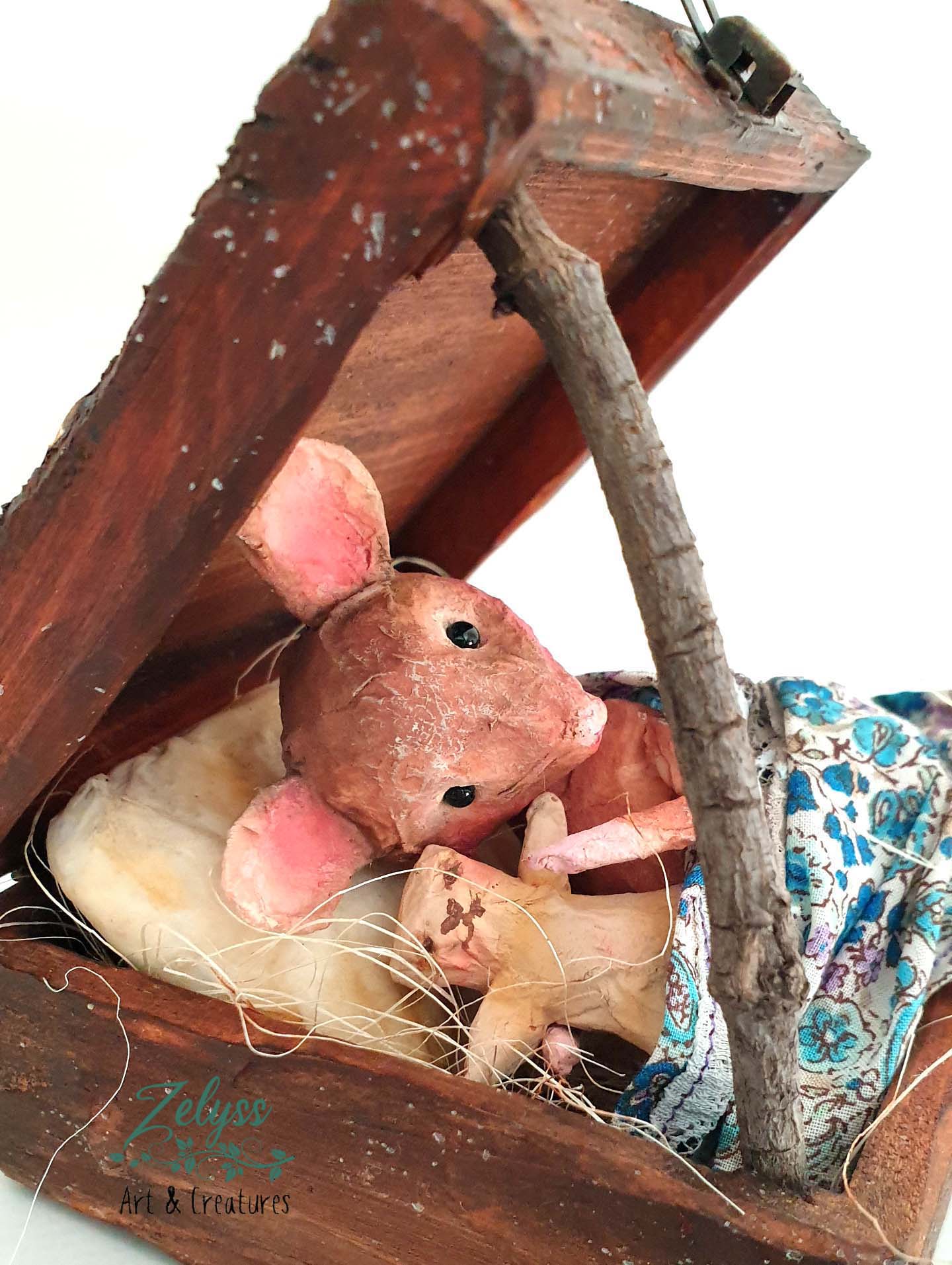 ✨🐭“Box of Snoozes”🐭✨ – handmade & unique Papier-mâché sculpture (12x12x10cm)