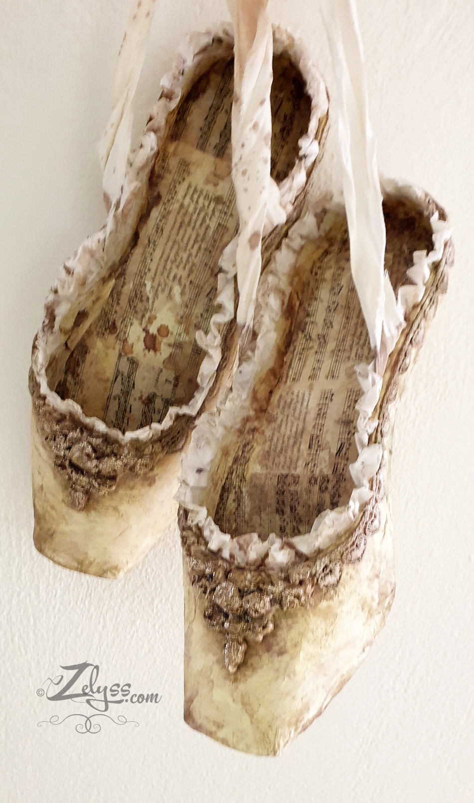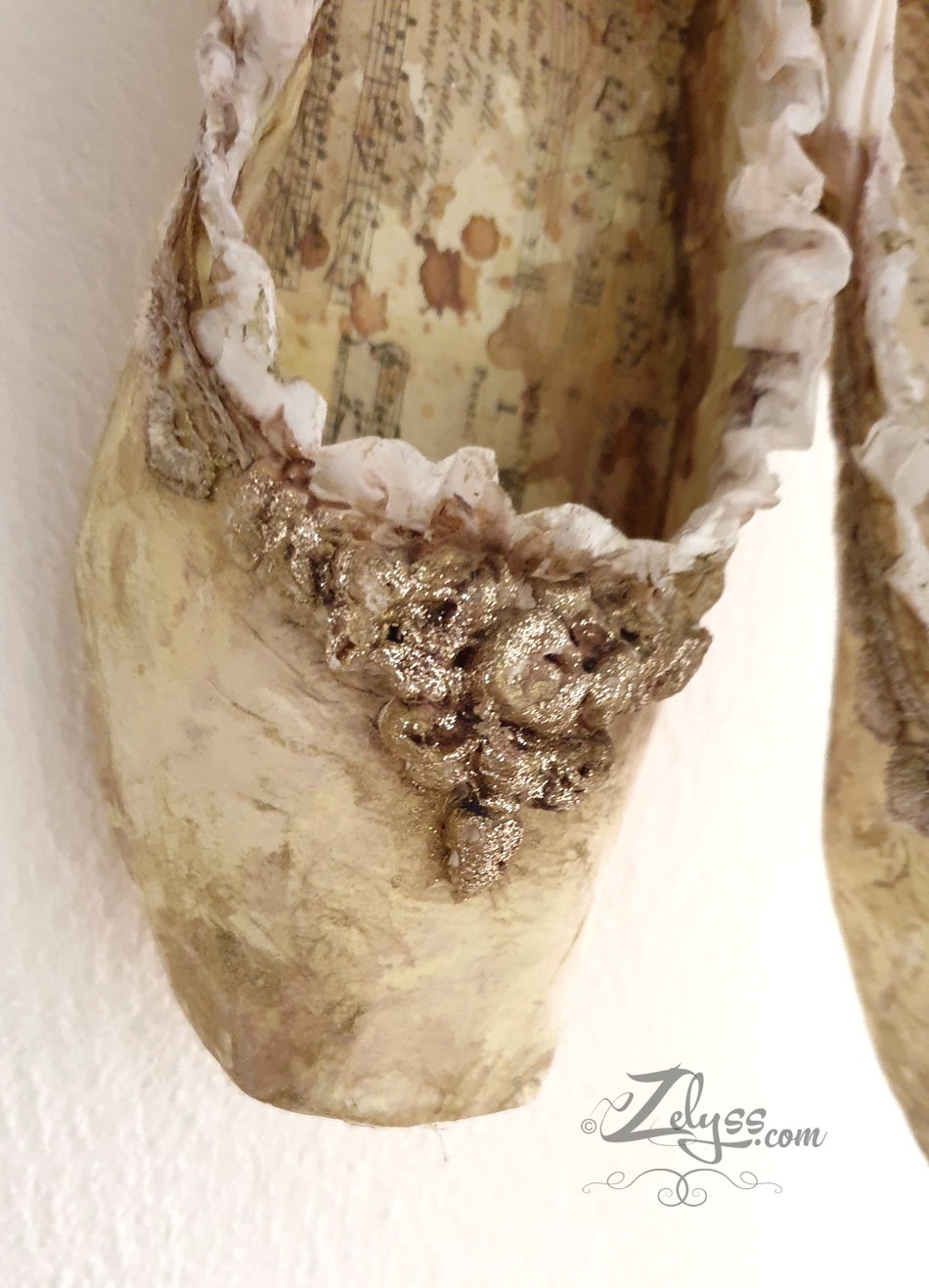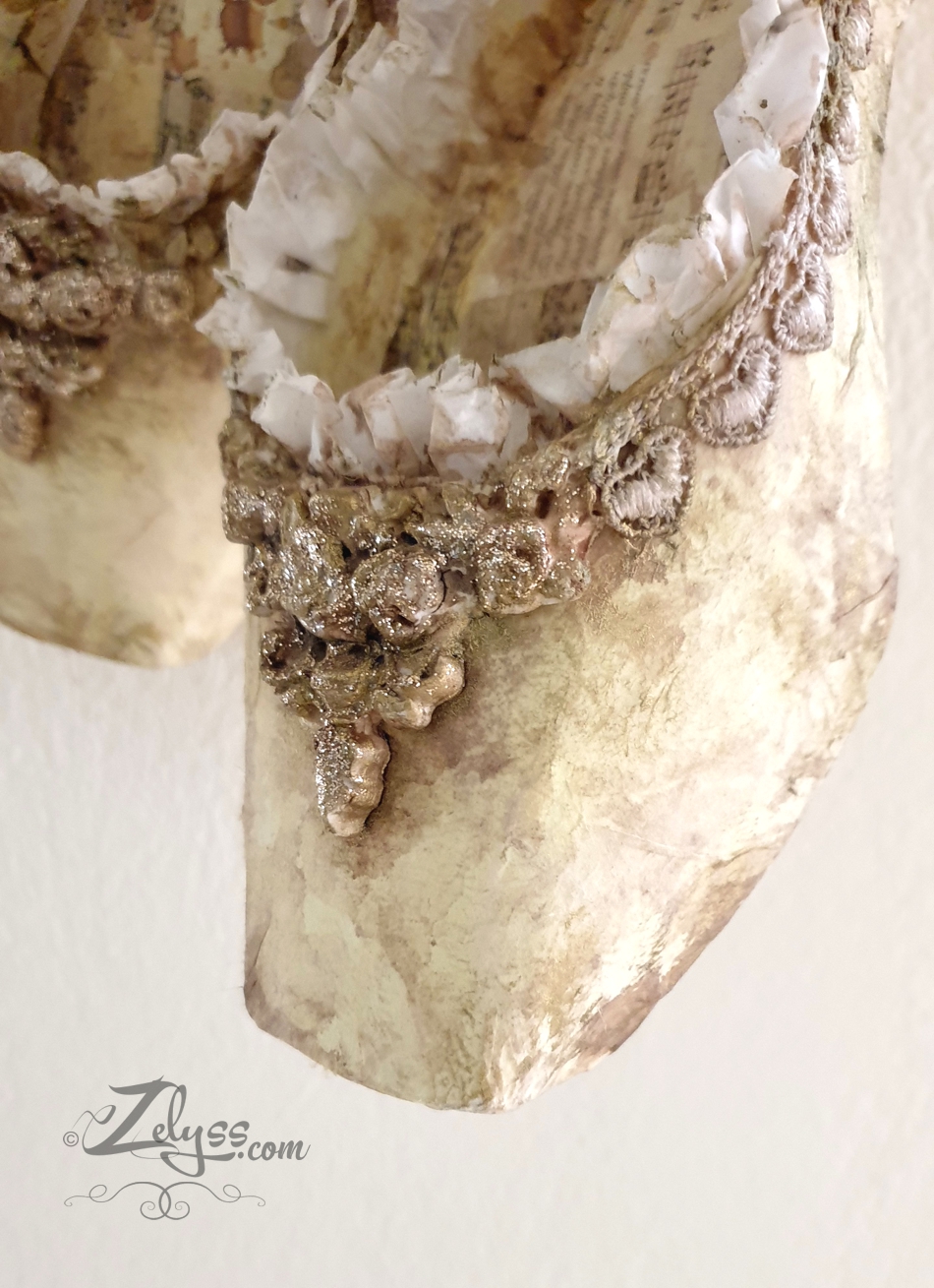 Papier-mâché sculpture dimensions (each shoe – set of 2) : approx. 7×4.3×3.5″ / 24x9cm